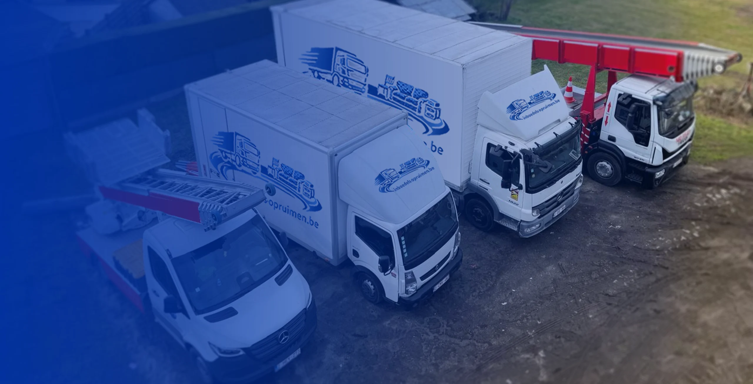 We werken met bestelwagens en vrachtwagens aangepast aan het volume van de opdracht. Standaard inboedel opruimingen vragen gemiddeld één tot drie ladingen. Grotere woningen of nalatenschappen met veel volume vragen meerdere ritten. Afvoer verloopt altijd via erkende faciliteiten met de nodige documentatie.